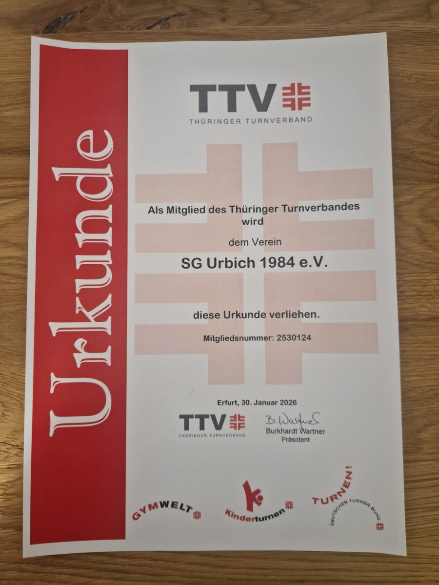 Die SG Urbich 1984 e.V. ist mit ihrer Sektion Frauenpower ab jetzt Mitglied im Thüringer Turnverband. Der Vorstand unseres Vereins hat die Mitgliedschaft im TTV (Thüringer Turnverband) beantragt, diese wurde