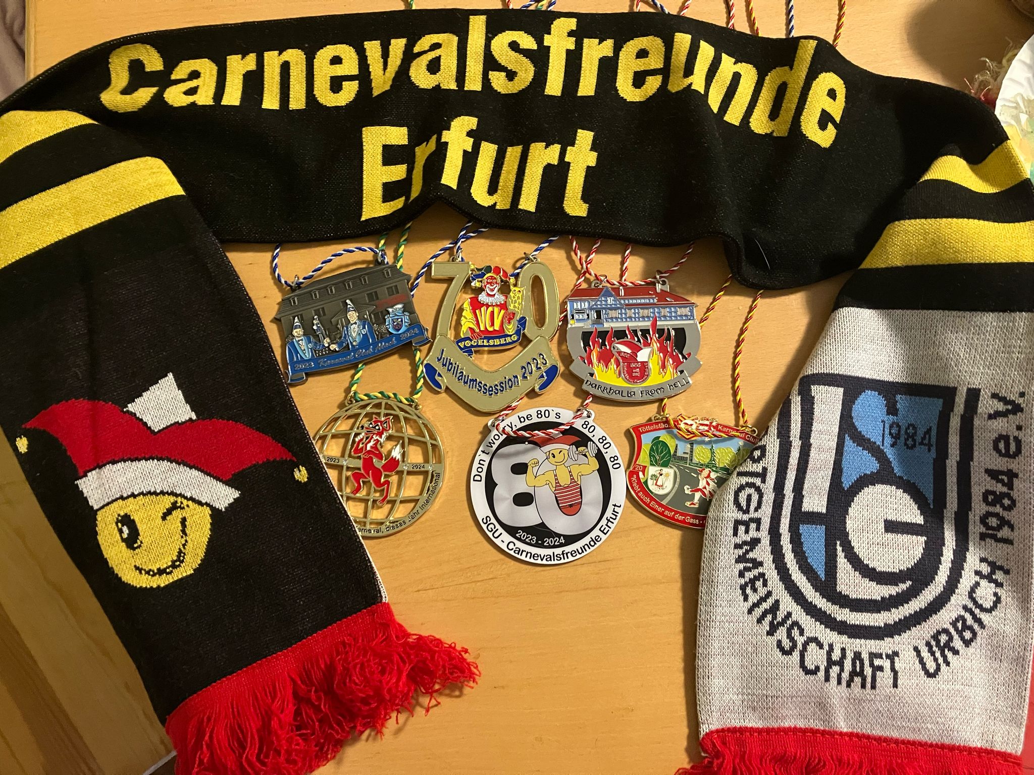 Die Carnevalsfreunde Erfurt (CFE) wurden 2009 gegründet und setzten sich ursprünglich hauptsächlich aus Mitgliedern der Erfordia Carneval Vereinigung e.V. (ECV) zusammen. In dieser Zeit wurde ein beeindruckendes Showballett ins Leben gerufen, das liebevoll „Isa’s Pflegefälle“ genannt wurde. Im Jahr 2020 beschlossen die Gründungsmitglieder, sich aus der aktiven Arbeit zurückzuziehen und suchten nach einer neuen Leitung. Glücklicherweise erklärte sich Sven Eckhardt bereit, die Rolle des Vorsitzenden zu übernehmen. Zu diesem Zeitpunkt zählte der Verein nur noch acht aktive Mitglieder, die sich auf Empfehlung von Susanne Wenzel dem SG Urbich 1984 anschlossen. So entstand die Sektion der Carnevalsfreunde innerhalb des SG Urbich.