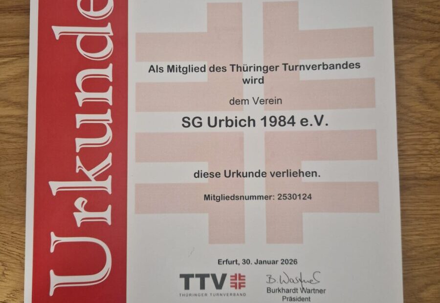 Die SG Urbich 1984 e.V. ist mit ihrer Sektion Frauenpower ab jetzt Mitglied im Thüringer Turnverband. Der Vorstand unseres Vereins hat die Mitgliedschaft im TTV (Thüringer Turnverband) beantragt, diese wurde…